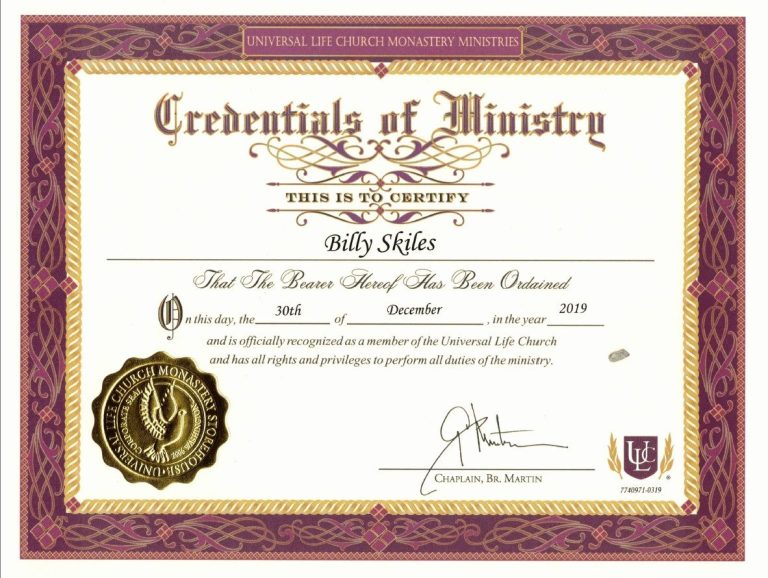 - Ordained wedding officiant